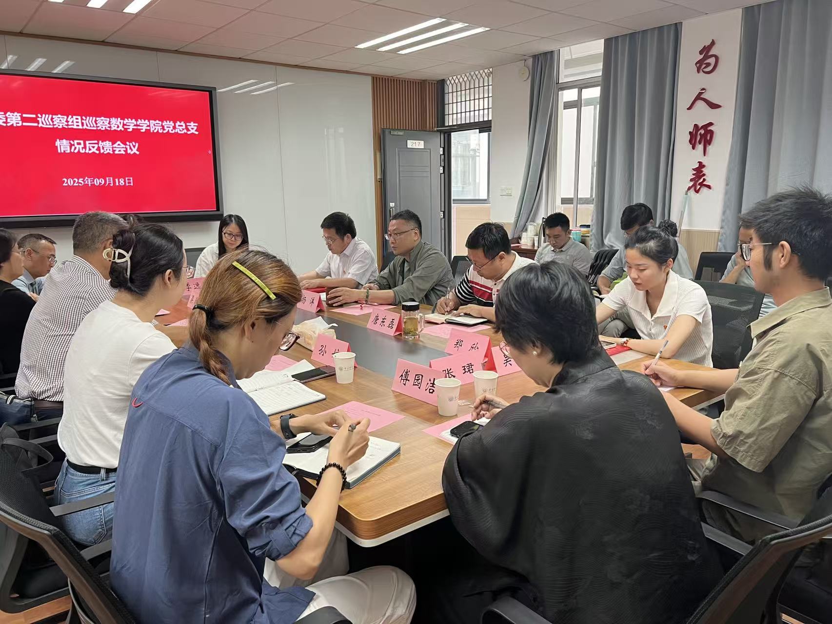 9月18日上午,全讯600cc大白菜官网在位育楼217会议室召开学校党委第二巡察组巡察全讯600cc大白菜官网党总支情况反馈会。第二巡察组组长徐振龙、副组长吴春梅、全讯600cc大白菜官网领导班子成员及行政人员、支部书记、系主任、教授委员会代表、教师代表参加反馈会。巡察办正科职专职巡察员傅园洁、第二巡察组成员列席会议。会议由全讯600cc大白菜官网党总支副书记余宏旺主持。