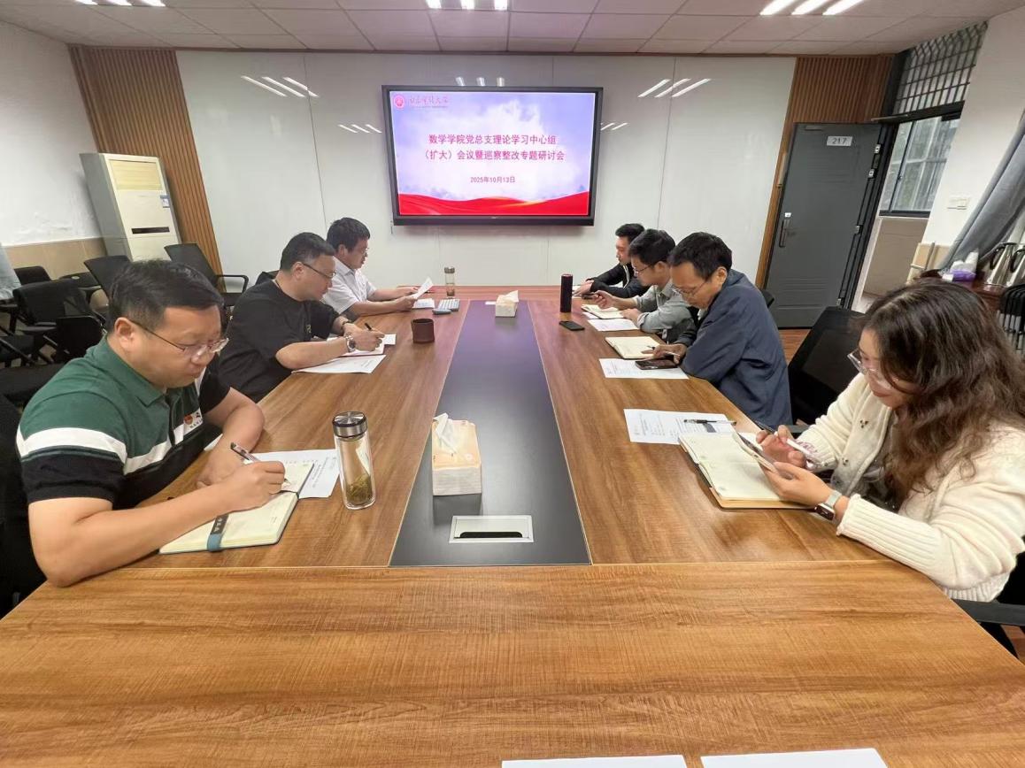 10月13日,全讯600cc大白菜官网党总支在位育楼217会议室召开理论学习中心组(扩大)会议暨巡察整改专题研讨会。学院党总支委员、党支部书记、党政办主任、教务办主任、团委书记及专职组织员参加会议,会议由党总支副书记余宏旺主持。