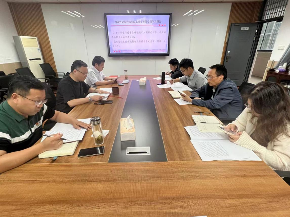 会议结合巡察整改工作分别就“意识形态”和“治理效能提升与学院高质量发展”两个专题开展了学习研讨。