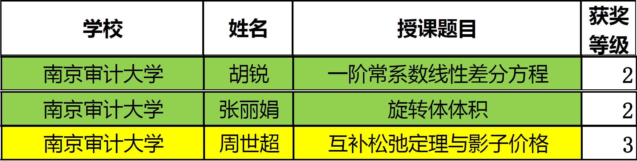 10月19日,省高校第十一届数学基础课教师授课竞赛圆满落幕,我院教师表现优异,斩获佳绩。其中,胡锐、张丽娟两位老师荣获二等奖,周世超老师荣获三等奖,充分展现了我院教师扎实的教学功底与良好的精神风貌。